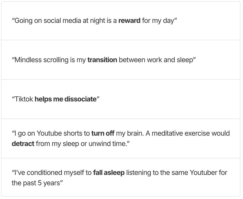 “Mindless scrolling is my transition between work and sleep”