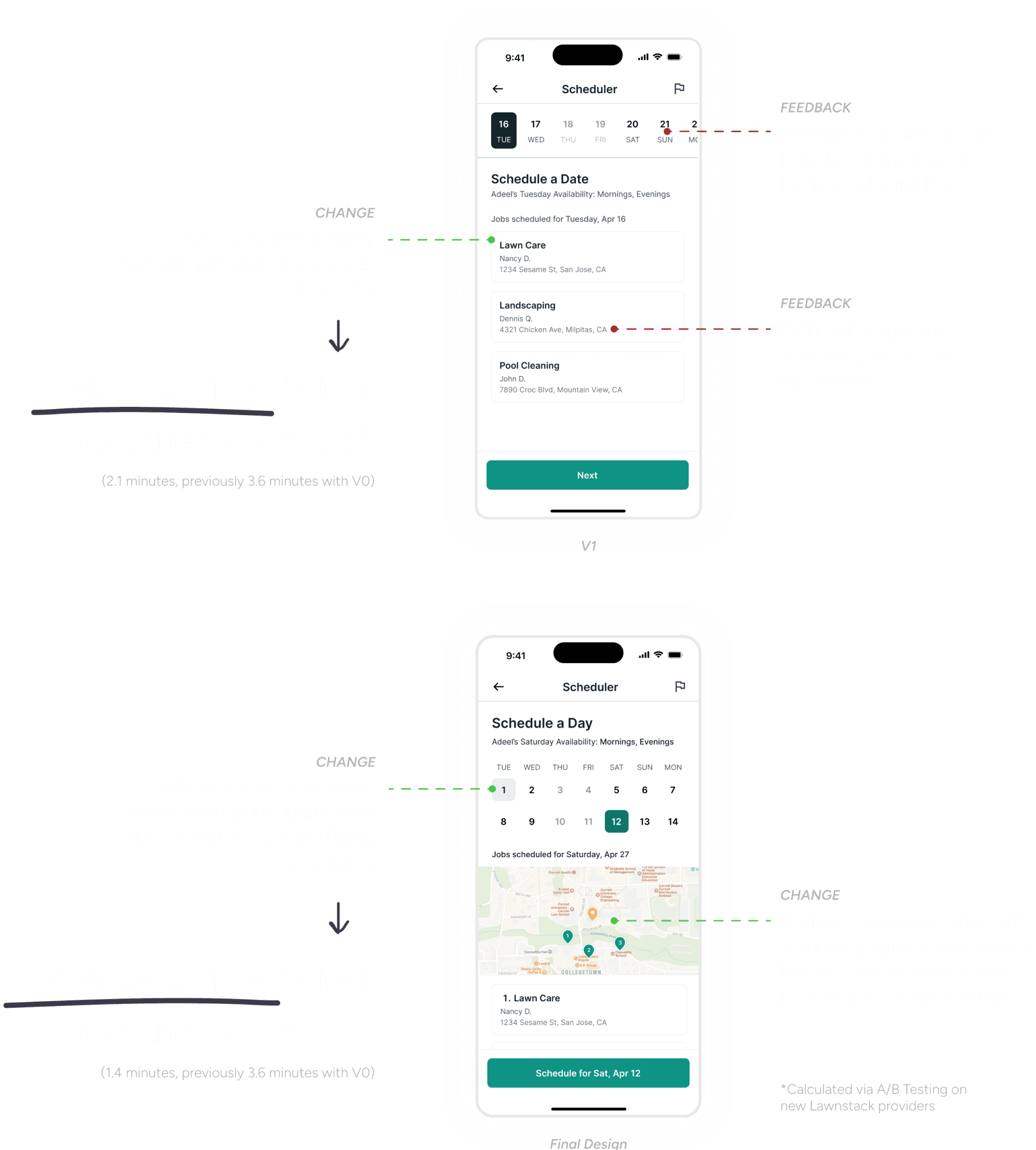 I user tested the existing Lawnstack scheduling feature on four existing providers on the platform.